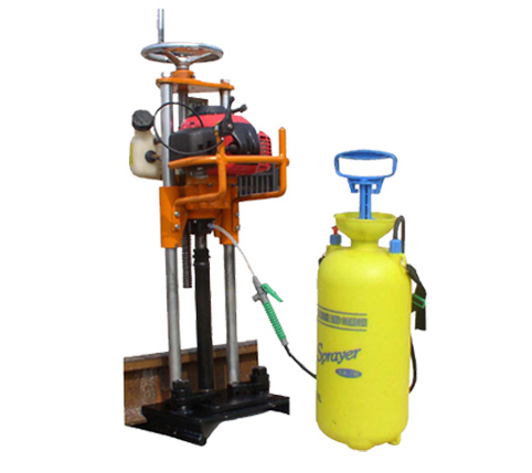 該機采用主機和夾具分體方式,具有快速下道特點,在作業(yè)中如需下道,可直主機一同拔出,拿下底座,將主機放到安全地方,待火車通過后先將底座放置在鋼軌上,調整好底座,將主機導向桿與底座導向套對接,可繼續(xù)鉆取。提高了工作效率,減輕了工人的勞動強度,是線路鋪設和維修的必備工具。